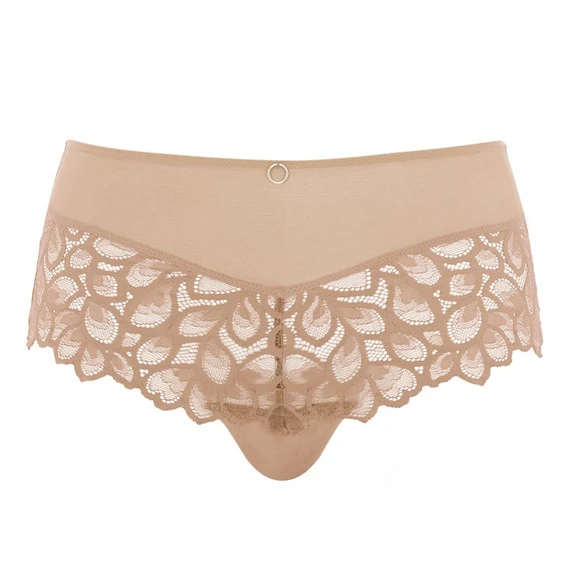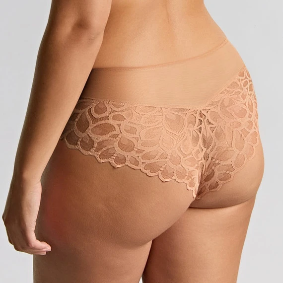 Der Allure Taillenslip von Panache kommt in der Farbe Honey. Dieser beigefarbene Slip ist aus schöner Spitze gefertigt. Die leicht durchscheinende Spitze lässt die Haut durchscheinen, super sexy! Der Slip ist auf der Vorderseite mit einem goldenen Detail verziert. Die hohe Taille kaschiert teilweise den Bauch. Kombinieren Sie diesen Taillenslip mit dem passenden BH.
