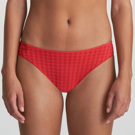 Der Avero-Rioslip von Marie Jo ist in der Farbe Scarlet erhältlich. Dieser rote Slip ist ein schöner Kompromiss zwischen Eleganz und Tragekomfort. Da der Slip an den Seiten recht hoch geschnitten ist, wirken Ihre Beine länger. Der Slip ist mit einer kleinen Blume an der Seite verziert.