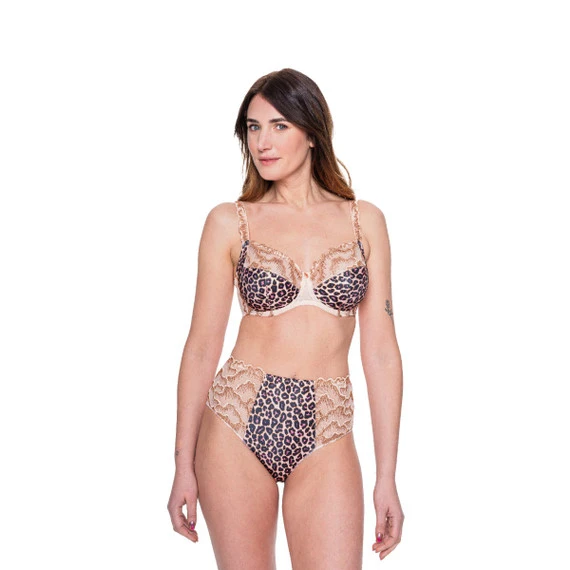 Der Bügel BH Bianca von Louisa Bracq ist in der Farbe Sun Stone gehalten. Dieses Modell ist mit einem Tierprint auf rosa Hintergrund verziert. Die Körbchen sind oben mit Wellenkanten und einem grafischen, gewellten Druck versehen, der durch einen dezenten Glitzer noch akzentuiert wird. Dank des Expertenwissens von Louisa Bracq bietet dieser BH sowohl in kleinen als auch in großen Körbchengrößen hervorragenden Halt und eine perfekte Passform. Kombinieren Sie ihn mit dem passenden Slip aus der Bianca-Kollektion für ein komplettes Set.