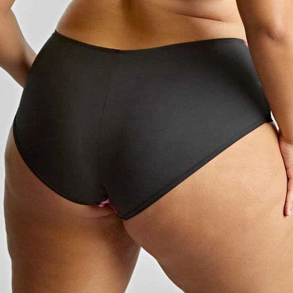 Der Bliss-Slip von Sculptresse kommt in der Farbe Rose Print. Der schwarz-rote Slip aus glattem Material ist an den Seiten mit leicht durchscheinendem Mesh verziert, das mit einem Blumendruck versehen ist. Der Slip hat eine normale Passform. Kombinieren Sie diesen Slip mit dem passenden BH.
