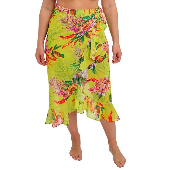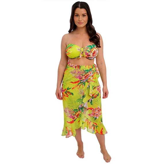 Der Cala Macarella Pareo von Fantasie Swim kommt in der Farbe Zest. Dieser farbenfrohe Pareo zeigt einen tropischen Druck auf einem limonenfarbenen Hintergrund. Der eklektische Druck und die leuchtenden Farben sorgen für die ultimative Sommerstimmung. Dieses vielseitige Accessoire ist perfekt, um Ihren Strandlook zu vervollständigen. Tragen Sie es als Rock, Kleid oder Schal für einen eleganten und sommerlichen Look. Kombinieren Sie diesen Pareo mit der passenden Bademode.