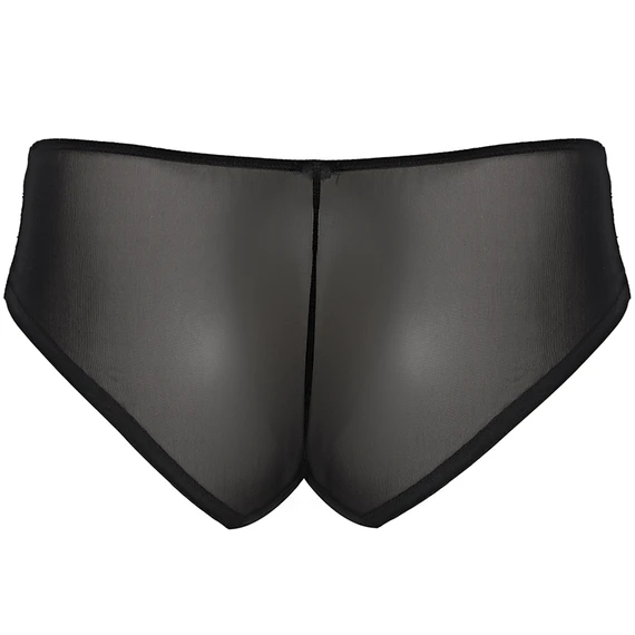 Der Clara-Slip von Panache ist in der Farbe Black erhältlich. Dieser schwarze Slip ist mit einer schönen Spitze auf dunkelgrauem Grund versehen, die einen schönen Kontrast bildet. Die Rückseite des Slips ist aus transparentem Mesh-Stoff gefertigt. Auf der Vorderseite ist eine kleine Schleife angebracht.