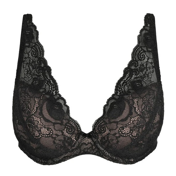 Der Cyrile Plunge BH von Marie Jo kommt in der Farbe Schwarz. Dieser schwarze BH kombiniert sexy mit Komfort und passt mühelos unter alle Ihre Outfits. Die tief ausgeschnittenen Cups zentrieren die Brüste und schaffen ein sinnliches Dekolleté. Die Cups sind im oberen Bereich aus leicht durchscheinender Spitze gefertigt, wodurch die Brust besser sichtbar wird. Mit raffinierten Details, einer perfekten Passform und einem modernen Look werden Sie sich jeden Tag selbstbewusst und feminin fühlen. Kombinieren Sie diesen BH mit einem der passenden Slips.