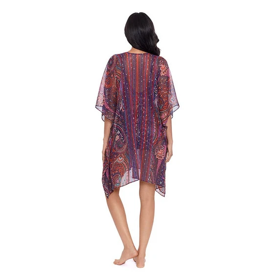 Der Dynasty Kaftan von Miraclesuit ist in der Farbe Multi erhältlich. Vervollständigen Sie Ihren Bademoden-Look mit diesem farbenfrohen Kaftan! Der Kaftan ist aus leichtem und luftigem Material gefertigt, das sich am Strand wunderbar trägt. Der leicht durchscheinende Stoff lässt die darunter liegende Bademode sichtbar werden. Zwischen den Stoffen ist ein dezenter Goldfaden eingewebt, der ein wenig funkelt. Der Kaftan fällt locker am Körper entlang und hat halblange Ärmel. Kombinieren Sie diesen Kaftan mit der passenden Bademode von Miraclesuit.