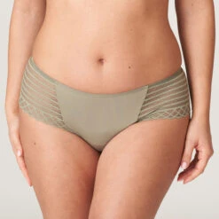 Die East End Hotpants von PrimaDonna Twist kommen in der Farbe Botanique. Dieser Slip hat eine leichte olivgrüne Farbe. Die Hotpants sind mit durchsichtigen Spitzendetails an den Seiten und am Rücken versehen. East End macht nicht nur optisch was her, sondern passt auch unter jedes Outfit. Kombinieren Sie diese Hotpants mit einem der East End-BHs!