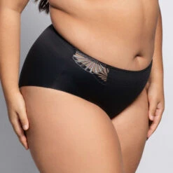 Der Emily Taillenslip von Ulla ist in der Farbe Schwarz erhältlich. Dieser schwarze Slip ist vorne mit Tüll mit Blumenstickerei verziert. Der Slip hat eine hohe Passform und bedeckt einen Teil des Bauches. Die Rückseite bedeckt das Gesäß vollständig. Kombinieren Sie diesen Slip mit einem der passenden BHs.