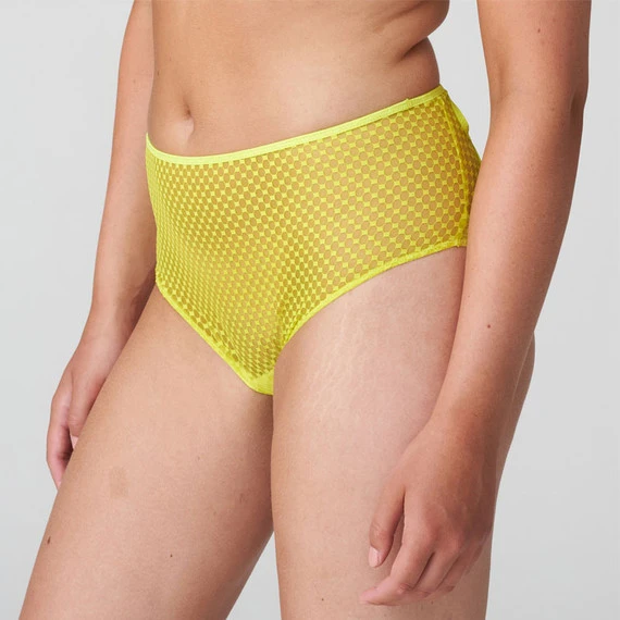 Die Glass Beach Hotpants von PrimaDonna Twist kommen in der Farbe Suncoast. Diese gelbe Hotpants sind aus transparentem Tüll gefertigt und mit einem einzigartigen Kreismuster verziert. Die leicht durchscheinenden Materialien lassen die Haut durchscheinen, super verführerisch. Der Slip fällt hoch auf die Taille und kaschiert einen Teil des Bauches. Das Cut-Out-Detail auf der Rückseite rundet den Slip ab. Kombinieren Sie diese Hotpants mit einem der passenden BHs. Glass Beach ist die perfekte Balance zwischen aufreizend und minimalistisch.