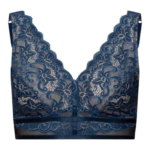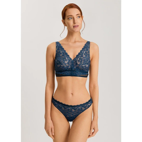 De Moments soft cup BH van Hanro is uitgevoerd in de kleur Mystic Blue. Deze blauwe soft BH is helemaal bewerkt met een prachtige kanten textuur. De BH heeft een perfecte pasvorm en hoogwaardige afwerking. Zachtheid op de huid en toch zeer goede ondersteuning voor iedere vrouw. Vrouwelijk en verleidelijk. Combineer de soft BH met een bijpassende slip.