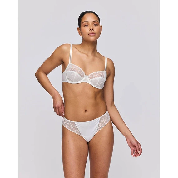 Der Heleen String von Marie Jo ist in der Farbe Nature erhältlich. Dieser elfenbeinfarbene String wird Ihr Set vervollständigen! Der Slip ist mit einer grafischen Stickerei verziert, die ein unwiderstehliches Gefühl vermittelt. Die hübsche Stickerei setzt sich über das Gesäß fort und sorgt für einen luxuriösen Look. Kombinieren Sie diesen String mit einem der passenden BHs aus der Heleen-Kollektion