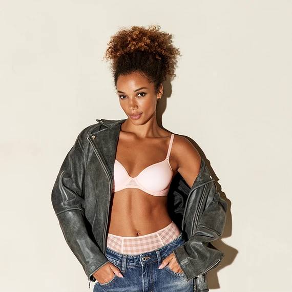 Der Jereme Spacer BH von Marie Jo kommt in der Farbe Glossy Pink. Dieser rosafarbene BH ist aus weichem Spacer-Material gefertigt, einem leichten und atmungsaktiven Material, das sich super weich anfühlt. Die glatten, vorgeformten Cups geben dem Busen eine schöne runde Form und der BH trägt sich unsichtbar unter der Kleidung. Das Rückenteil ist mit einem sportlichen Karodruck versehen, stilvoll und zeitlos! Kombinieren Sie diesen BH mit einem der passenden Slips.