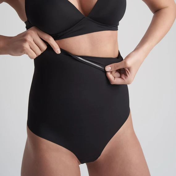 Der Korrigierende High Waist String von Bye Bra kommt in der Farbe Schwarz. Dieser schwarze String hat einen leicht korrigierenden Bund und ist für den täglichen Gebrauch gedacht. Dank des Silikonbesatzes im Bund hängt der String nicht durch. Der String trägt sich unsichtbar unter der Kleidung und glättet sich schön. Der String ist sehr bequem und für jede Figur geeignet. Kombinieren Sie ihn mit Ihrem Lieblings-BH.