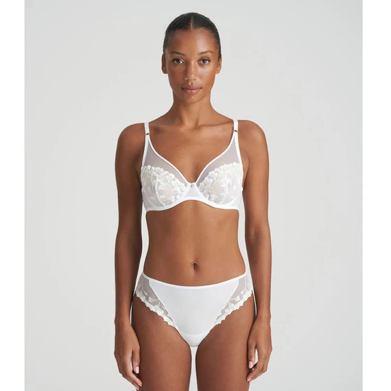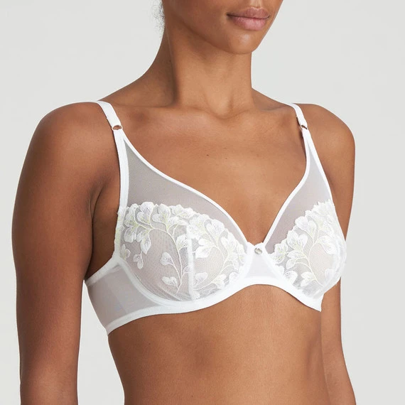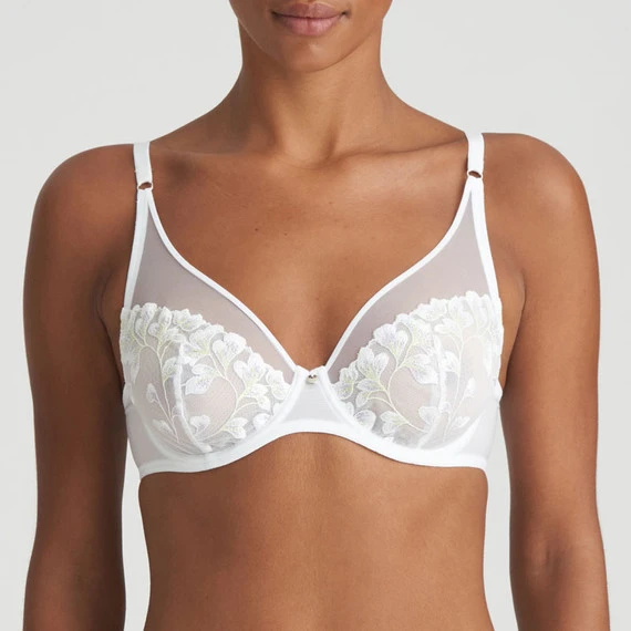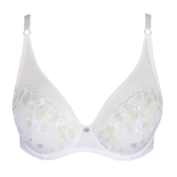 Der Leda Bügel BH von Marie Jo ist in der Farbe Weiß erhältlich. Dieser weiße Bügel-BH ist aus transparentem Tüll mit einer besonderen Blumenstickerei und glänzenden Konturen auf der Oberseite. Das verleiht Ihnen einen femininen und raffinierten Look. Dieser Bügel-BH erinnert an die Form eines Triangel-BHs. Diese Passform verleiht Ihnen ein schönes Dekolleté und bietet besten Halt und Komfort. Kombinieren Sie diesen BH mit einem der Leda-Slips.