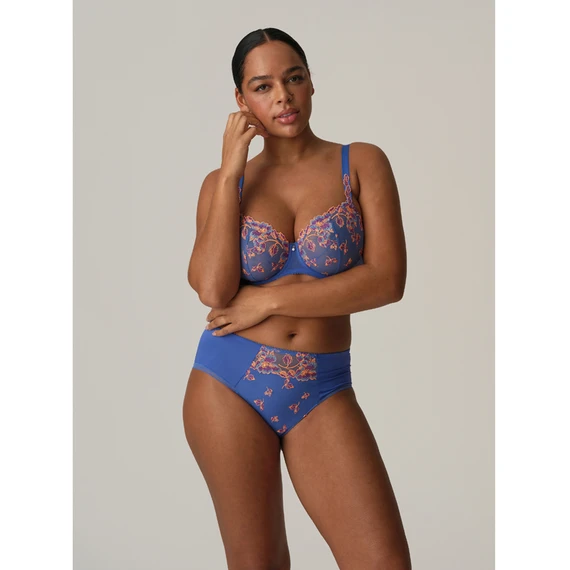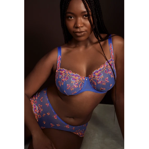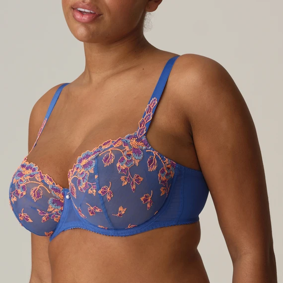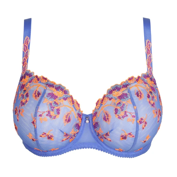 Der Lenca Balconette BH von PrimaDonna kommt in der Farbe Blue Eyes. Lassen Sie Ihre Tage mit diesem farbenfrohen BH glänzen. Die blauen Cups sind aus robustem Tüll gefertigt und mit leuchtenden Highlights in Orange und Fuchsia verziert. Die gleiche Stickerei findet sich auch an den Trägern wieder. Die festen Cups stützen den Busen und geben ihm einen natürlichen Auftrieb. Der leicht durchscheinende Tüll lässt die Haut teilweise durchscheinen. Die Perle zwischen den Cups rundet den BH ab. Kombinieren Sie diesen BH mit einem der passenden Slips.
