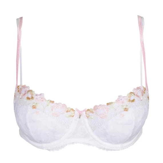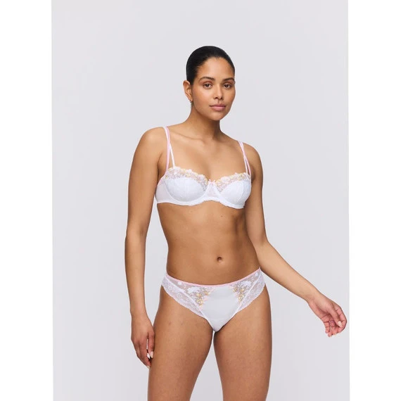 Der Lizelot Padded Balconette Bra von Marie Jo kommt in der Farbe Weiß. Dieser Sommer-BH kombiniert luxuriöse Stickereien mit dezenter Spitze und verspielten Details in zartem Rosa und Gelb. Die vorgeformten Cups bieten eine schöne runde Form und zusätzlichen Halt, während der Balconette-Schnitt ein verführerisches Dekolleté schafft. Kombinieren Sie diesen BH mit dem passenden Slip.