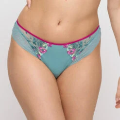 Der Lizelot Slip von Marie Jo kommt in der Farbe Bali Green. Dieser elegante Slip ist ein Must-Have mit luxuriöser Ausstrahlung. Die florale Stickerei mit rosafarbenen Details verleiht ihm eine verspielte Note, während die dezente Spitze einen raffinierten Look kreiert. Kombinieren Sie den Slip mit einem passenden BH aus der Lizelot-Kollektion für ein komplettes Set.