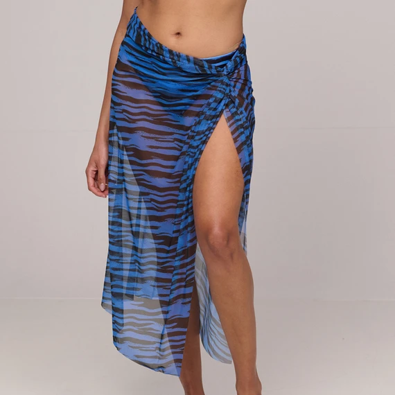 Der Marva Strandrock von Marie Jo Swim kommt in der Farbe Wild Waves. Dieser Strandrock verleiht dem allgegenwärtigen Tierprint eine moderne und stilvolle Note. Der blaue Zebradruck kombiniert Verspieltheit mit einem Hauch von Abenteuer. Der Strandrock ist aus leichtem und luftigem Material gefertigt, das die darunter liegende Bademode durchscheinen lässt. Mit seinen verschiedenen Tragemöglichkeiten ist dieser Strandrock unverzichtbar für jeden Bademoden-Look! Kombinieren Sie diesen Strandrock mit Ihrem Lieblings-Badeanzug oder Bikini.