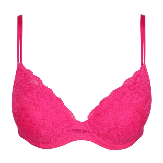 Der Melipha Herzform BH von Marie Jo kommt in der Farbe Very Berry. Setzen Sie in dieser Saison auf eine energiegeladene Charakterfarbe! Dieser rosafarbene BH ist mit floraler Spitze überzogen. Die gemoldeten Cups geben dem Busen eine schöne runde Form. Da sich die Spitze über die Cups erstreckt, schmiegt sie sich nahtlos an die Haut an. Die doppelten Schulterträger sorgen für einen koketten Touch! Kombinieren Sie diesen BH mit einem der passenden Slips.