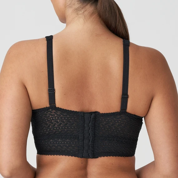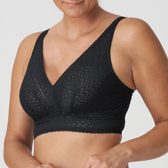 Der Montara Bralette von PrimaDonna kommt in der Farbe Schwarz. Dieser schwarze Bralette ist vollständig mit elastischer Spitze verziert. Die zusätzliche Borte am unteren Rand verleiht dem Bralette eine Longline-Passform. Das Bralette hat keine Bügel, wodurch es sich besonders weich und bequem anfühlt. Die festen Cups stützen den Busen und zentrieren ihn für ein schönes Dekolleté. Die durchscheinenden Materialien verleihen dem Bralette einen verführerischen Look. Kombinieren Sie dieses Bralette mit einem der Montara-Slips.