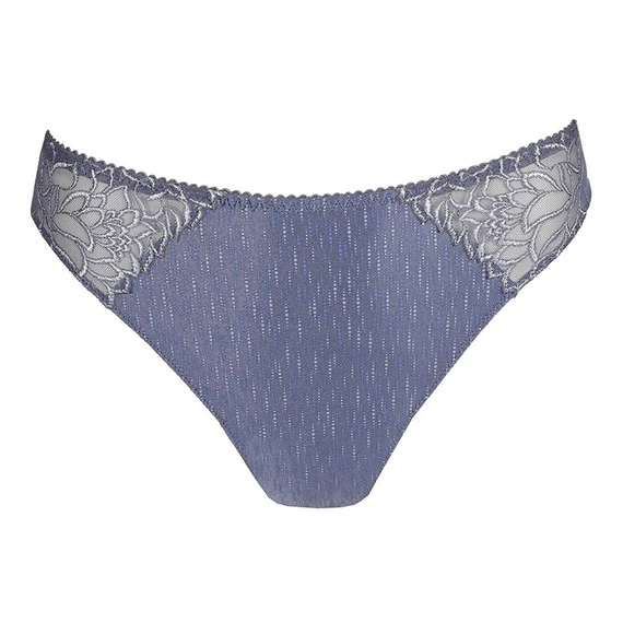 Der Monterrey String von PrimaDonna kommt in der Farbe Nightshadow Blue. Dieser blaue String ist mit einem verspielten Retro-Print verziert. Die Seiten des Slips sind mit einer hübschen Broderie mit Blattmuster versehen. Kombinieren Sie diesen String mit einem der passenden Monterrey-BHs.
