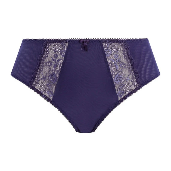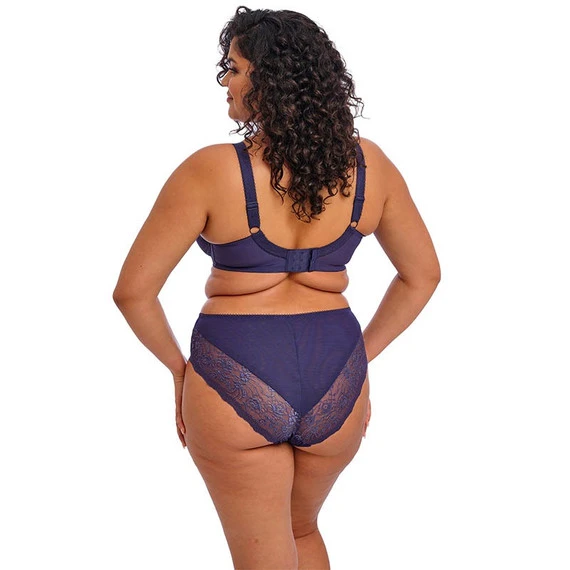 Der Morgan Taillenslip von Elomi kommt in der Farbe Midnight. Wie der BH hat auch dieser Slip einen dezenten Blumenprint an den Seiten. Der Slip fällt hoch an der Taille. Kombinieren Sie diesen schönen Slip mit dem Morgan Vollschalen-BH!