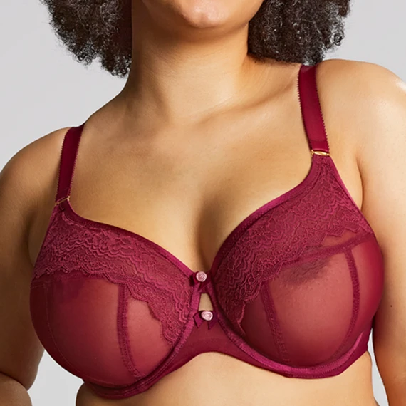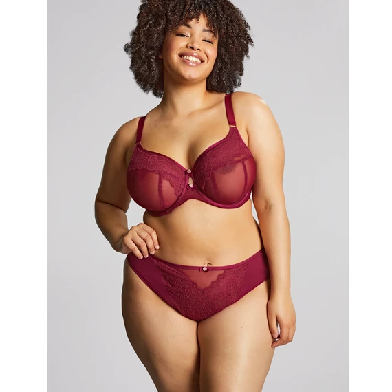 Der Natalia Full Cup BH von Sculptresse kommt in der Farbe Bordeauxrot. Dieser rote BH ist mit romantischer floraler Spitze verziert, sehr stilvoll! Die nicht vorgeformten Cups lassen die Haut leicht durchscheinen und heben den Busen dezent an. Die verbreiterten Schulterträger und das weiche Material machen diesen BH besonders bequem. Zwischen den Cups ist der BH mit süßen Rosen verziert. Kombinieren Sie diesen BH mit dem passenden Slip für einen kompletten Look!