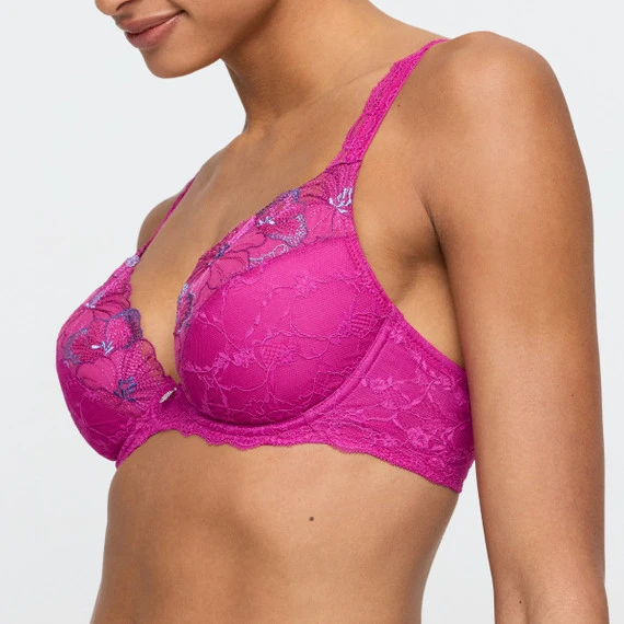 Der Noemy Push-up BH von Marie Jo kommt in der Farbe Fuchsia Fiesta. Bringen Sie Farbe in Ihre Dessous-Schublade mit der Noemy Kollektion! Der fuchsiafarbene Farbton strahlt Energie und Weiblichkeit aus, während die weichen Materialien und die raffinierte Passform für ultimativen Komfort sorgen. Die Cups haben herausnehmbare Polster für mehr oder weniger Hebung und sind mit Spitze und Tüll verziert. Die hell- und dunkelviolette Stickerei verleiht dem BH einen schönen Farbkontrast. Die gemoldeten Cups mit herausnehmbarer Polsterung verleihen dem Busen ein sinnliches Dekolleté. Der Charme zwischen den Cups rundet den BH ab. Kombinieren Sie diesen BH mit einem der passenden Slips.