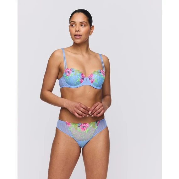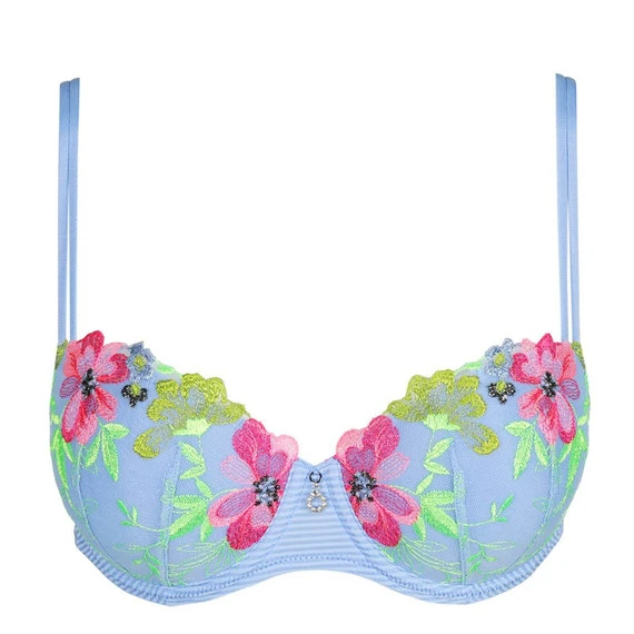 Der vorgeformte Balconette-BH Marie Jo Odilly kombiniert einen raffinierten Look mit ultimativem Komfort. Die Mousse-Cups sorgen für weichen Halt und ein schönes, natürlich geformtes Dekolleté, während das horizontale Futter für einen eleganten, offenen Look sorgt. Dieser BH zeigt gerade genug Haut für einen subtilen, verführerischen Touch, ohne Kompromisse beim Tragekomfort einzugehen. Der Pastellton Santorini Blue wird durch zarte Blumenstickereien und dezente Streifen wunderbar ergänzt und verleiht diesem Balconette einen trendigen und zeitlosen Look. Perfekt zu kombinieren mit dem passenden Slip für ein stilvolles und komplettes Set.