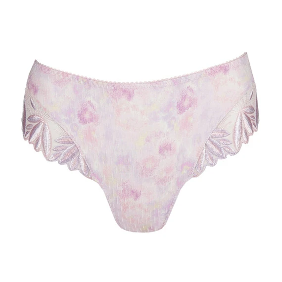 Der Orlando Luxus String von PrimaDonna Lingerie kommt in der Farbe Sweet Violet. Dieser rosafarbene Tanga ist mit wunderschöner Spitze verziert. Die hohen Beinausschnitte sind mit zusätzlichen Streifen aus luxuriöser Stickerei versehen und sorgen für einen unwiderstehlichen Look! Die Kombination mit dem Aquarelldruck vervollständigt den Tanga. Kombinieren Sie diesen Tanga mit einem der BHs aus der Orlando-Kollektion.