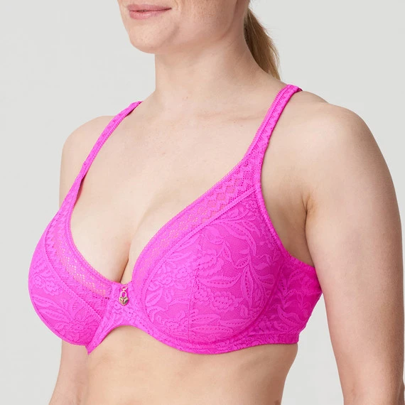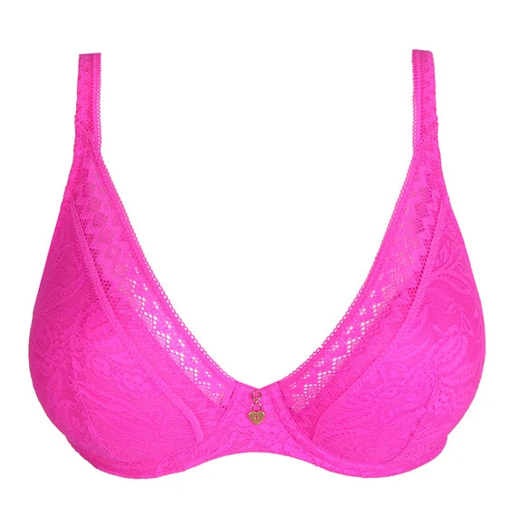 Der Palermo Plunge BH von PrimaDonna Twist kommt in der Farbe Cactus Flower. Dieser leuchtend pinke BH ist mit sinnlicher, floraler Spitze verziert. Das grafische Spitzenmotiv fließt elegant in die Schulterträger und das Rückenteil. Zu schön, um es zu verstecken! Die gepolsterten Cups fühlen sich weich an und der Bügel sorgt für optimalen Halt. Die tiefe Passform verleiht Ihnen ein schönes Dekolleté. Zwischen den Körbchen ist der BH mit einem goldenen Schlossanhänger verziert, der für den ultimativen romantischen Look sorgt. Kombinieren Sie diesen BH mit einem der passenden Slips.