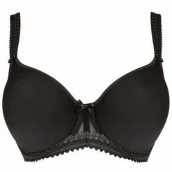 Der Rebecca Vorgeformter BH von Fantasie ist in der Farbe Schwarz erhältlich. Die schwarzen Cups sind nahtlos und aus einem atmungsaktiven Stoff gefertigt. An den Trägern, zwischen den Cups, an der Seite und am Rücken des BHs ist eine schöne Spitze eingearbeitet. Der Rebecca Lace Spacer BH bietet eine perfekte Unterstützung und eignet sich sehr gut zum Tragen unter engen Oberteilen.