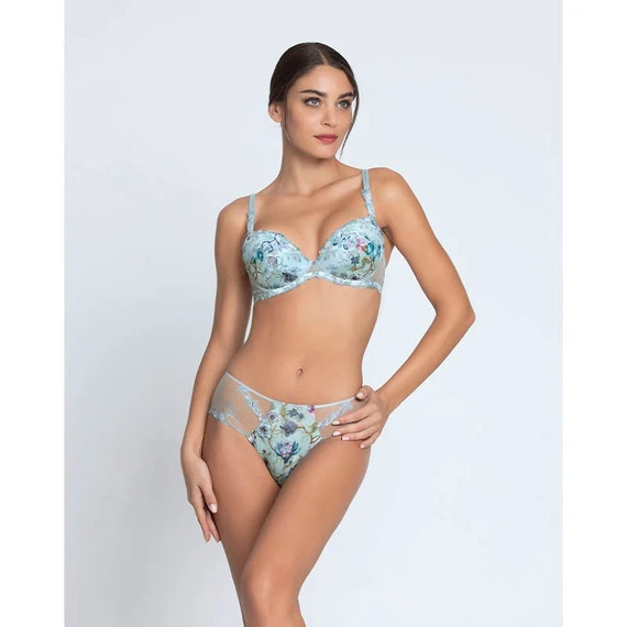 Die Reve en Fleurs Hotpants von Lise Charmel sind in der Farbe Reve Opale gehalten. Diese blauen Hotpants sind zum Träumen da! Die zarte Farbe und die bunten Blumen bilden eine heitere Kombination, die zu jedem Anlass passt. Der durchscheinende Tüll an den Seiten und am Gesäß bringt die Haut zur Geltung. Die Hotpants bedecken teilweise das Gesäß. Kombinieren Sie diese Hotpants mit einem der passenden BHs.