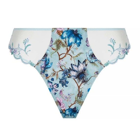 Der Slip Reve en Fleurs von Lise Charmel kommt in der Farbe Reve Opale. Dieser blaue Slip ist zum Träumen da! Die zarte Farbe und die bunten Blumen bilden eine heitere Kombination, die zu jedem Anlass passt. Der leicht durchscheinende Tüll an den Seiten und am Gesäß bringt die Haut zur Geltung. Der Slip bedeckt teilweise das Gesäß. Kombinieren Sie diesen Slip mit einem der passenden BHs.