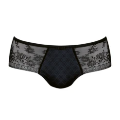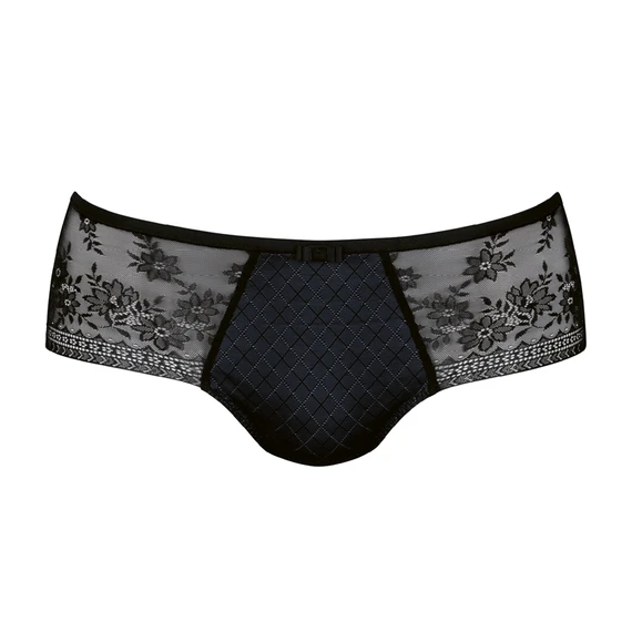 Der Rosemary Short von Rosa Faia ist in der Farbe Schwarz gehalten. Dieser Short ist mit einem klassischen Karodruck kombiniert und mit schöner schwarzer, floraler Spitze an den Seiten versehen. Der Short bedeckt das Gesäß nicht vollständig und ist auch auf der Rückseite mit schöner schwarzer floraler Spitze verziert.