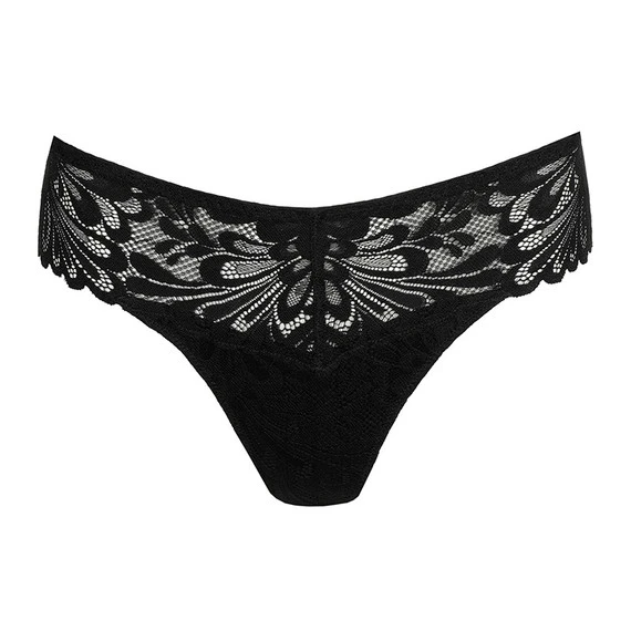 Der Rupi String von Primadonna Twist kommt in der Farbe Schwarz. Der String ist aus dezenter floraler Spitze gefertigt, die dem String einen romantischen Look verleiht. Der String hat eine reguläre Passform und bringt das Gesäß voll zur Geltung. Kombinieren Sie diesen String mit einem der passenden BHs aus der Rupi Kollektion.