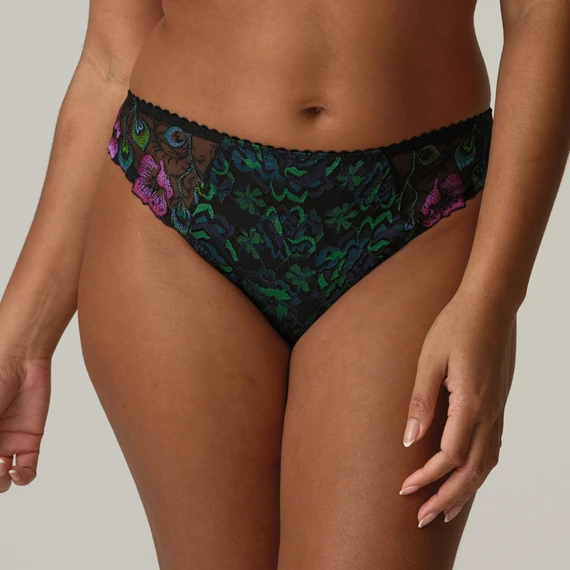 Der San Angel Slip von PrimaDonna kommt in der Farbe Peacock Feather. Der Slip ist mit einer schönen bunten Blumenstickerei verziert. Die Rückseite des Slips ist einfarbig schwarz. Kombinieren Sie den Slip mit einem der passenden San Angel-BHs für einen kompletten Look.