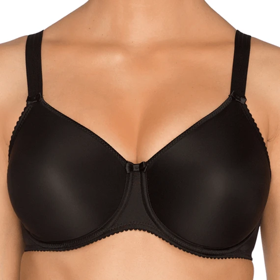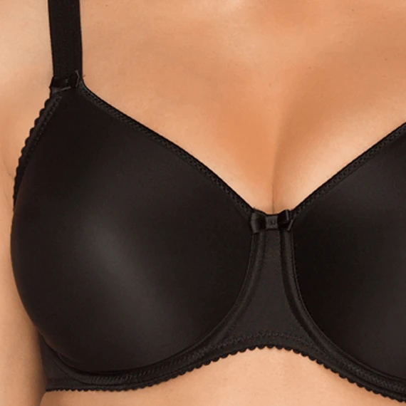 Der Satin Nahtlose Bügel-BH ist in der Farbe Schwarz erhältlich. Dieser schwarze BH hat nahtlose Cups, die vollkommen glatt sind. Dieser BH stützt und hebt die Oberweite für eine schöne runde Form. Der BH hat einen subtilen Minimierungseffekt, ohne die Oberweite zu flach zu drücken. Niedliche Schleifen sind zwischen den Cups und an den Trägern eingearbeitet.
