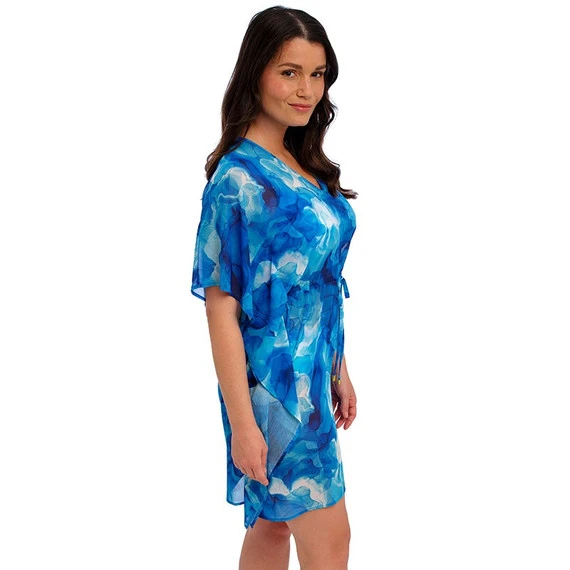 Der Kaftan Saunton Sands von Fantasie Swim kommt in Dazzling Blue. Tauchen Sie ein in die Tiefen des Stils. Der wunderschöne blaue Druck fängt das Schimmern des Sonnenlichts auf dem Wasser ein und spiegelt die Ruhe des Ozeans wider. Dieser Kaftan ist aus einem leicht durchscheinenden Material gefertigt, das sich weich anfühlt und luftig ist, um am Strand getragen zu werden. Der Kaftan fällt bis zum Knie und hat einen V-Ausschnitt. Mit dem passenden Gürtel lässt sich die Taille betonen. Kombinieren Sie diesen Kaftan mit der passenden Bademode von Fantasie Badmode.