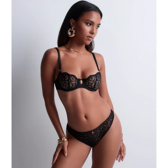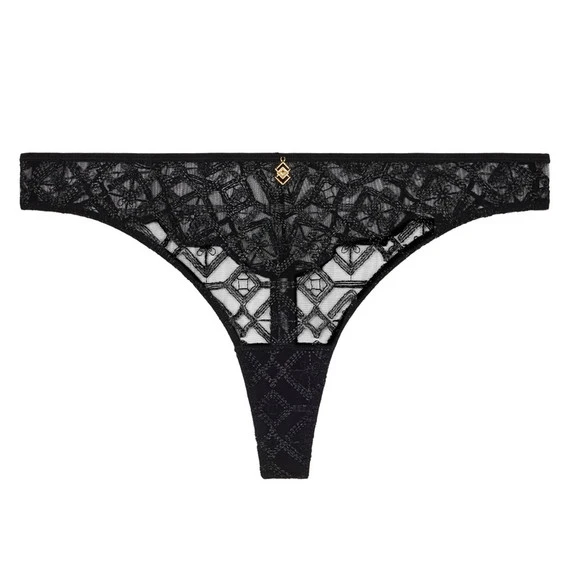 Der String Sense Of Illusion von Aubade kommt in der Farbe Schwarz. Dieser schwarze String aus nachhaltigen, recycelten Materialien kombiniert ein modernes, grafisches Design mit raffinierten, verführerischen Details. Die subtile Transparenz des Tülls, die Stickerei und die goldenen Akzente sorgen für einen luxuriösen und sinnlichen Look. Der String hat eine normale Passform und bringt das Gesäß voll zur Geltung. Kombinieren Sie diesen String mit einem der passenden BHs und Strapsen für ein komplettes Set.