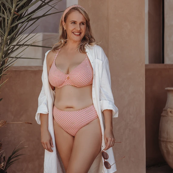 Das Seventies Haarband von Annadiva Swim ist in der Farbe Blush erhältlich. Sei ein Flirt in diesem fröhlichen Siebziger Jahre Print. Die raffinierte Farbkombination gibt Ihnen einen hippen und jungen Look. Das Haarband ist aus dem gleichen Material wie der Rest der Bademodenkollektion, so dass Sie sich keine Sorgen machen müssen, dass es nass wird. Kombinieren Sie das Haarband mit einem Bikiniset für den perfekten Sommerlook. It’s a summer fling!