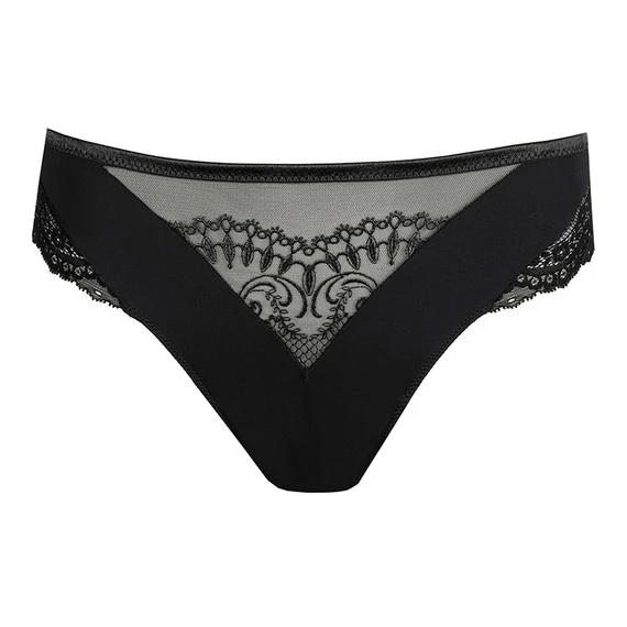 Der Shimla String von Primadonna kommt in der Farbe Schwarz. Dieser schwarze String ist aus transparentem Tüll und Spitze gefertigt und mit italienischen Stickereien und schimmernden Details verziert. Supersexy und elegant! Der String hat eine normale Passform und die Mikrofasereinsätze sorgen für einen bedeckteren Sitz. Kombinieren Sie diesen String mit einem der passenden BHs.