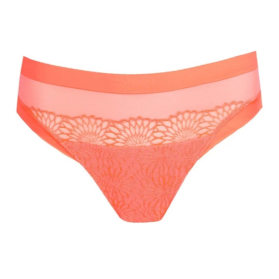 Der Sophora Slip von PrimaDonna kommt in der Farbe Spritz. Dieser Slip ist elegant und bequem. Die Vorderseite besteht aus korallenfarbenem Tüll und ist mit einer Stickerei verziert. Kombinieren Sie diesen Slip mit einem der Sophora-BHs.