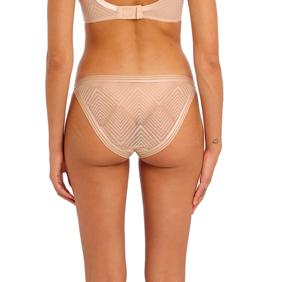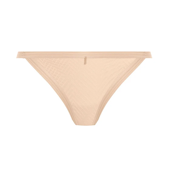 Der Tailored Slip von Freya kommt in der Farbe Natural Beige. Dieser zierliche, beigefarbene Slip ist halbtransparent und mit einem Streifenprint versehen. Der elastische Bund verleiht dem Slip einen sportlichen Look. Der Slip ist auf der Vorderseite mit einer roségoldenen Verzierung versehen. Kombinieren Sie diesen Slip mit einem der passenden BHs aus der Tailored-Kollektion!