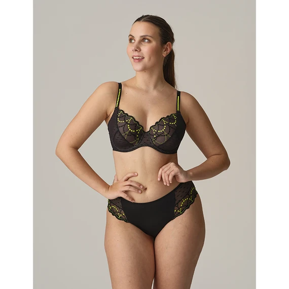 Der Tepito Herzform BH von PrimaDonna Twist kommt in der Farbe Dark Glow. Fashionable style with a funky glow! Dieser schwarze herzform BH hat gemoldete Cups, die mit einer zarten Nietenstickerei versehen sind. Die neonfarbenen Akzente leuchten im Dunkeln und erzeugen einen schönen Schimmer. Die feste Polsterung in den Cups verleiht dem Busen eine schöne runde Form. Kombinieren Sie diesen BH mit einem der passenden Slips. Totally in love!