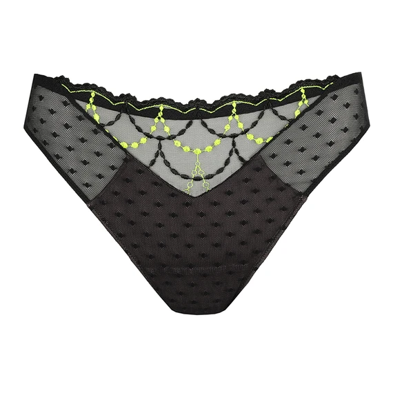 Der Tepito slip von PrimaDonna Twist kommt in der Farbe Dark Glow. Fashionable style with a funky glow! Dieser schwarze Slip ist mit einer raffinierten Nieten-Stickerei versehen. Die neonfarbenen Akzente leuchten im Dunkeln und erzeugen einen schönen Schimmer. Dank der nahtlosen Verarbeitung knittert der Slip nicht unter der Kleidung. Kombinieren Sie diesen Slip mit einem der passenden BHs. Totally in love!