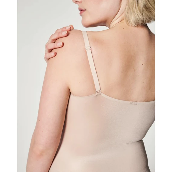 Das Thinstincts 2.0 Top von Spanx kommt in der Farbe Champagne. Dieses Oberteil ist aus robusten, atmungsaktiven und feuchtigkeitsableitenden Materialien gefertigt. Sie können dieses beigefarbene Shirt allein und unter einem Top tragen. Die ultraglatten Nähte machen das Top sehr bequem. Das Top zaubert eine schönere Silhouette und macht Ihren Körper straff, glatt und schlank. Ideal für das tägliche Tragen. Das Top hat verstellbare Spaghetti-Träger. Kombinieren Sie dieses Korrekturtop mit einem Korrekturslip für eine schlankere Silhouette.