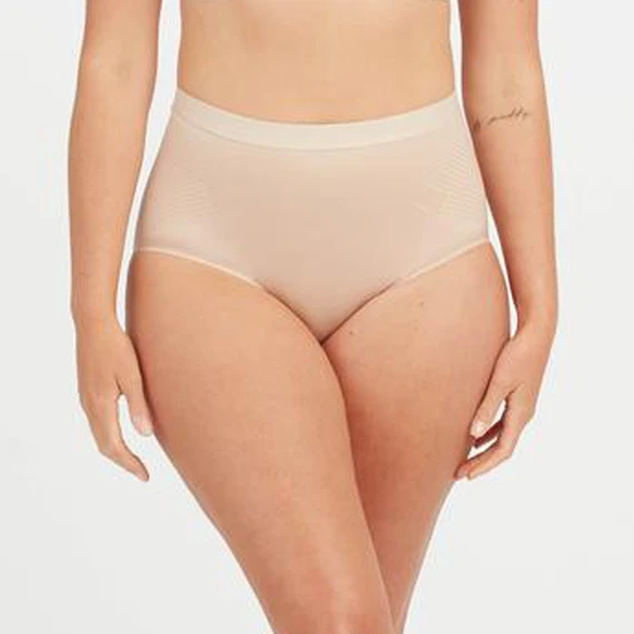 Der Thinstincts korrigierender Taillenslip von Spanx ist in der Farbe Champagne Beige erhältlich. Dieser beigefarbenen Slip ist aus atmungsaktivem, leichtem, dünnem und weichem Material gefertigt, das für absoluten Komfort sorgt. Ein aufgedrucktes Formmuster ist an den richtigen Stellen sichtbar und sorgt für zusätzlichen Halt. Der figurformende Taillienslip gleichen Unebenheiten aus, strafft und festigt Bauch, Taille und Hüften. Diese nahtlosen Slips sind perfekt, um sie unter jedem Outfit zu tragen!