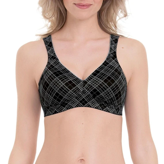 Der Twin Art Soft-BH von Rosa Faia ist aus schwarzem, atmungsaktivem Stoff mit lustigem Karomuster. Dieser Twin-BH ist seit über 10 Jahren Teil der Rosa Faia-Kollektion. Die doppellagigen Cups tragen sich sehr angenehm. Die nahtlose Verarbeitung macht diesen BH absolut unsichtbar unter T-Shirts.