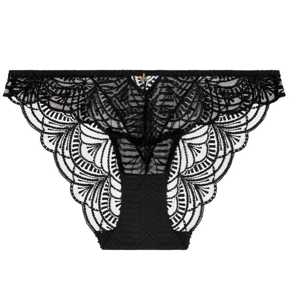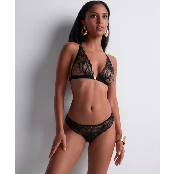Der Vibes Slip von Aubade kommt in der Farbe Black. Spüren Sie die feurige, sinnliche Leidenschaft. Dieser Slip ist mit einer verführerischen Stickerei verziert. Durch den leichten Tüll gibt die Stickerei einen Tattoo-Effekt auf der Haut, super sexy. Der goldene Anhänger an der Vorderseite rundet den Slip ab. Kombinieren Sie diesen Slip mit einem der passenden BHs.