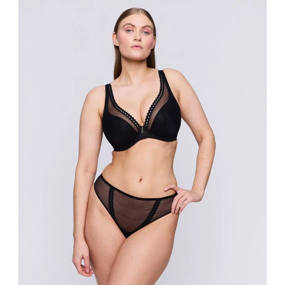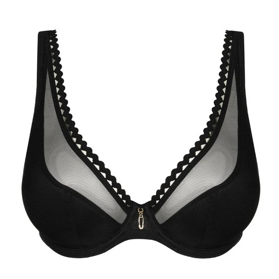 Der Vivgirl Plunge BH von PrimaDonna Twist kommt in der Farbe Schwarz. Dieser schwarze BH hat eine wellenförmige Stickerei entlang der Oberseite der Cups, die sich bis zu den Schulterträgern fortsetzt. Die leichte Polsterung in den Cups gibt dem Busen eine schöne runde Form. Zwischen den Cups ist ein Anhänger eingearbeitet. Kombinieren Sie diesen BH mit einem der passenden Slips.