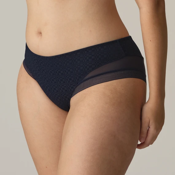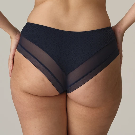 Die Yelapa Hotpants von PrimaDonna Twist kommt in der Farbe Majestic Blue. Diese blauen Hotpants sind aus einem luxuriösen Jacquard-Stoff mit Karomuster gefertigt. Die Rückseite der Hotpants bedeckt teilweise das Gesäß. Kombinieren Sie diese Hotpants mit einem der passenden BHs.